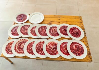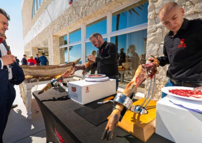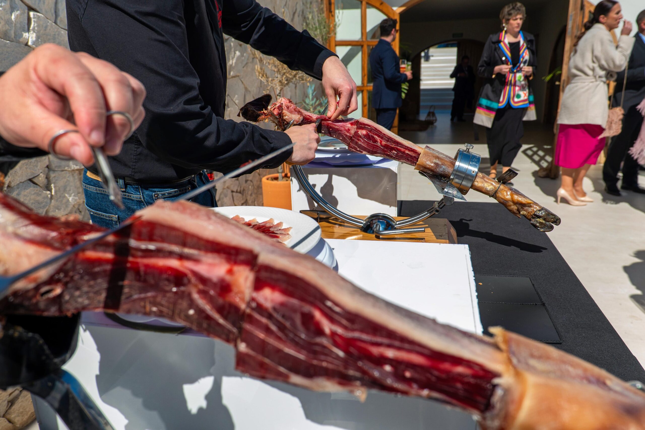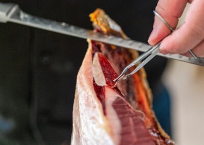 Elección y cata de los tipos de jamón, número de jamones a cortar en el evento, cómo y cuándo realizar el corte y todo tipo de posibilidades que tiene el jamón.