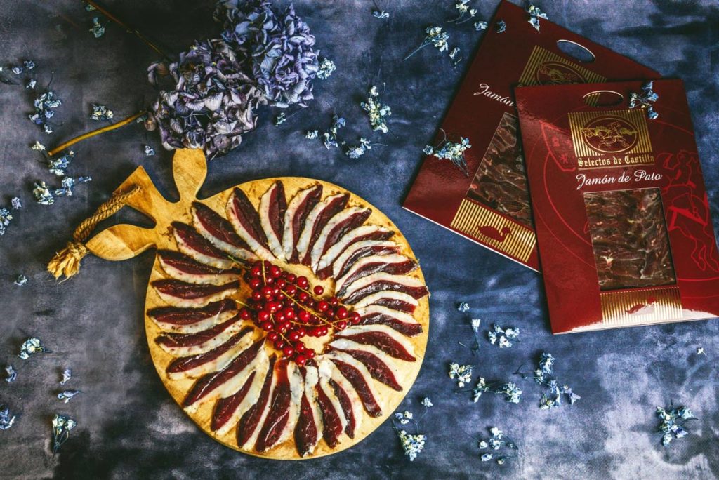 Podríamos pensar que se obtiene del muslo, como en el caso del cerdo, pero no. El jamón de pato se obtiene de la pechuga. La similitud con el jamón de cerdo o la cecina está en las técnicas de curado y salazón que se le aplican a la carne. Esta preparación es idónea para servir como aperitivo o combinar con ensaladas, si bien contiene grandes cantidades de sal.