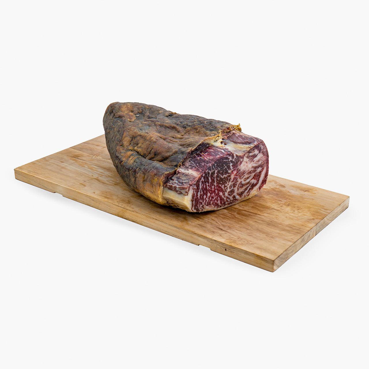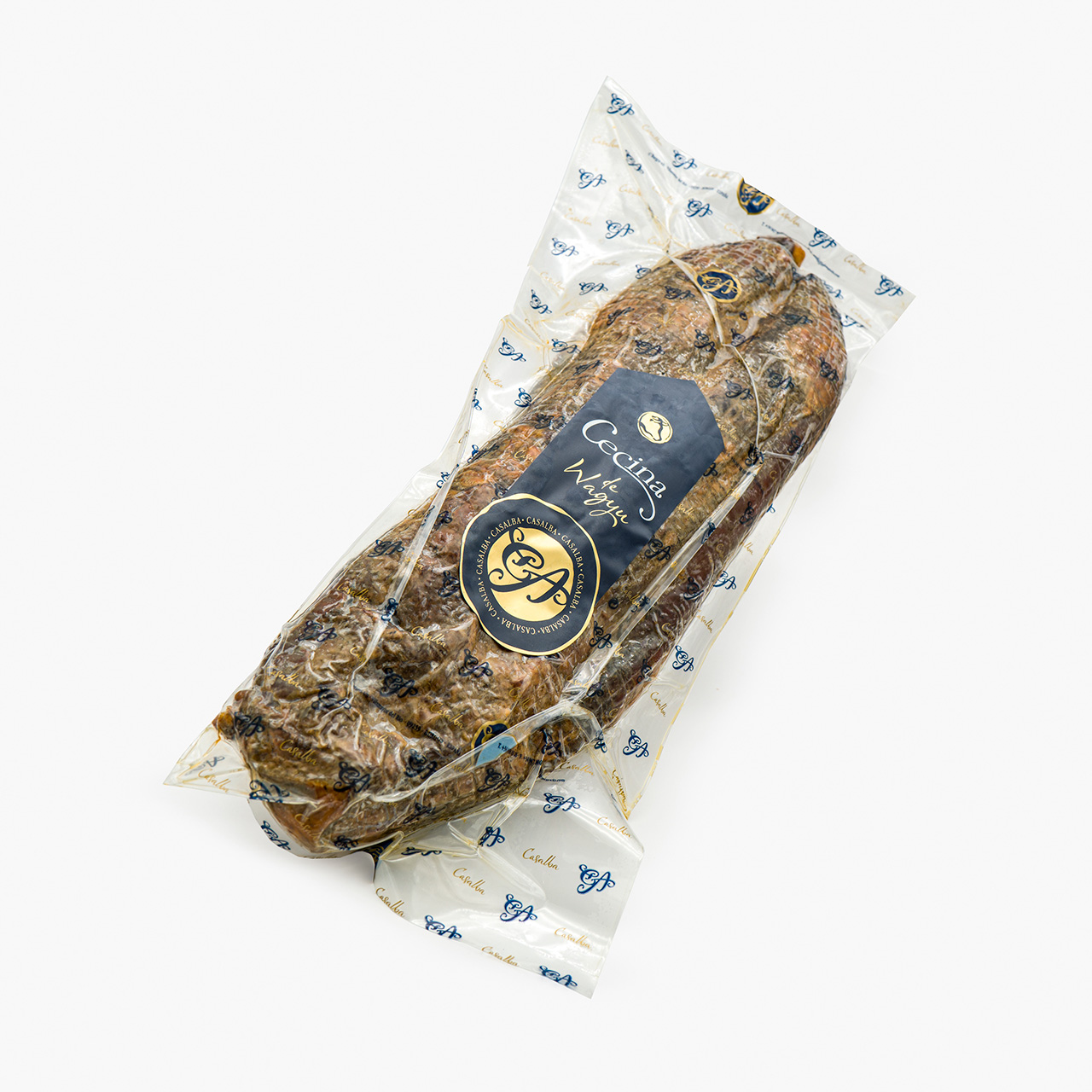 La Cecina de Wagyu de Casalba es un manjar gourmet elaborado artesanalmente en Villamayor del Río, Burgos. Este producto combina la tradición de la cecina española con la calidad excepcional de la carne de Wagyu, conocida por su terneza y alta infiltración de grasa. La cecina se cura en sal y se ahuma ligeramente con maderas nobles, luego se seca durante 12 a 18 meses, intensificando su sabor y añadiendo un toque ahumado. Suave y melosa, con un sabor profundo y notas dulces. El marmoleo de la carne ofrece una experiencia única en cada bocado. Rica en grasas insaturadas, es una opción saludable dentro de los embutidos premium. Ideal para disfrutar sola en finas lonchas, o acompañada de quesos, panes artesanos y un buen vino. Casalba, comprometida con la calidad, ha creado una cecina de Wagyu que refleja lo mejor de la tradición cárnica española y la exquisitez de la carne Wagyu, perfecta para ocasiones especiales o para quienes buscan una experiencia gastronómica superior.