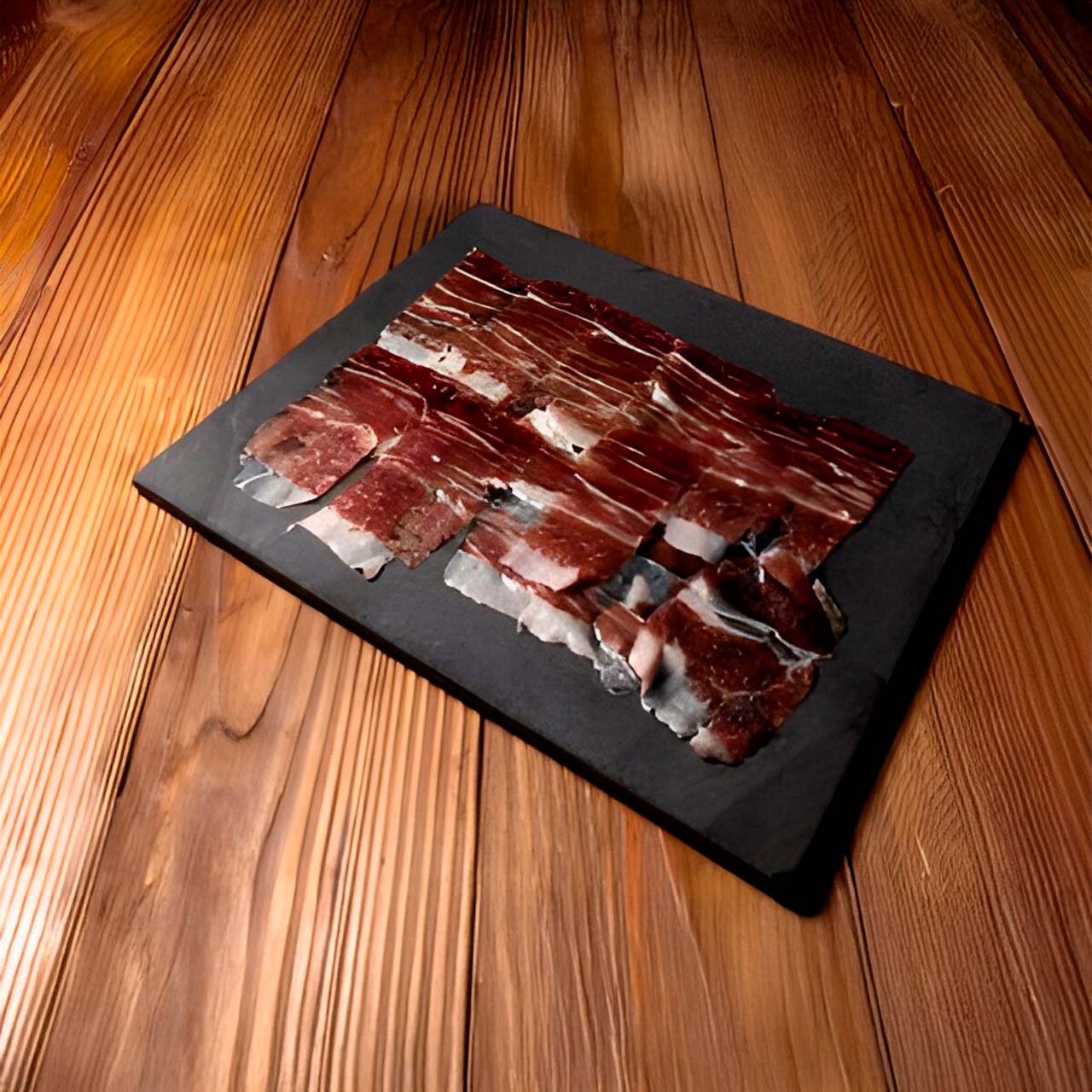 El Jamón 100% Ibérico de Bellota Gabriel Castaño es una joya gastronómica con una grasa brillante y delicada, rica en ácido oleico, similar al aceite de oliva. Su textura es suave, con un aroma persistente y un sabor jugoso, delicado y dulce. Este jamón se elabora a partir de cerdos 100% ibéricos, criados en libertad en las dehesas de Huelva y alimentados con bellotas y pastos naturales. Su curación, certificada por la brida negra del Consejo Regulador, dura al menos 36 meses en cuevas naturales, lo que le confiere un sabor suave, color del magro rojo intengos,, grasa amarilla-transparente y una textura jugosa. El jamón ibérico de bellota SELECCIÓN PRIVADA, procede de una rigurosa selección en el mismo secadero por nuestro personal de La Alacena Castellana. En resumen, el jamón ibérico de bellota es un producto excepcional que refleja la tradicioón y calidad de la gastronomía ibérica