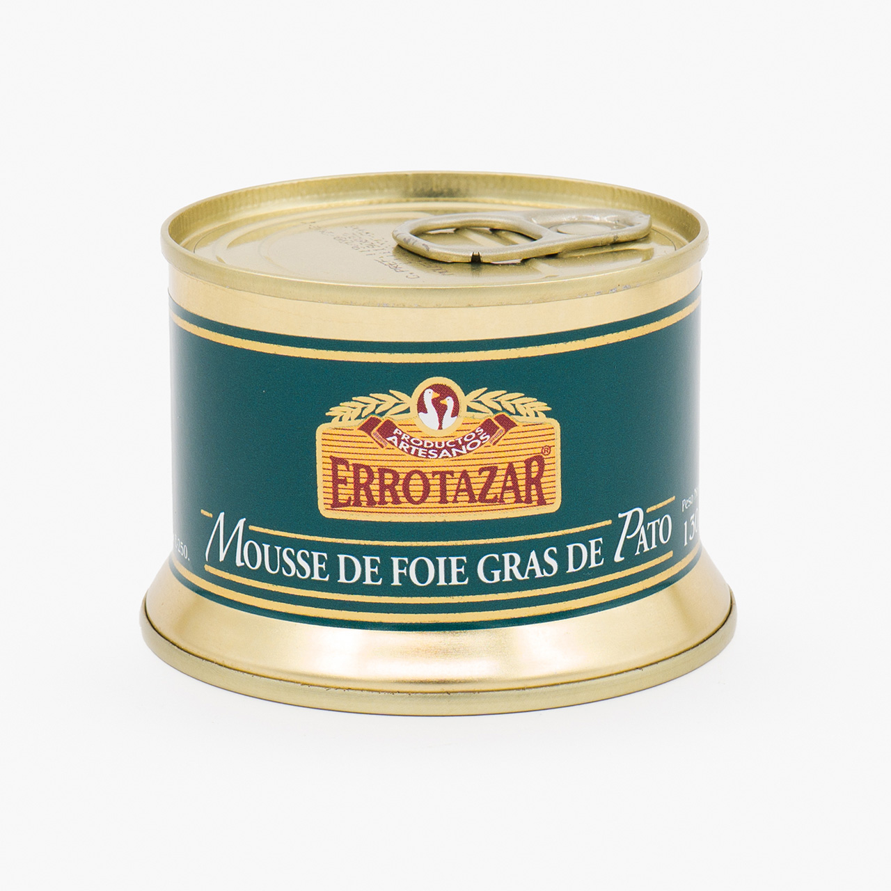 El mousse de foie gras de pato Errotazar es un producto gourmet artesanal, elaborado con hígado de pato cebado y otros ingredientes naturales. Su textura fina y sabor exquisito lo hacen ideal solo o con salsas dulces.