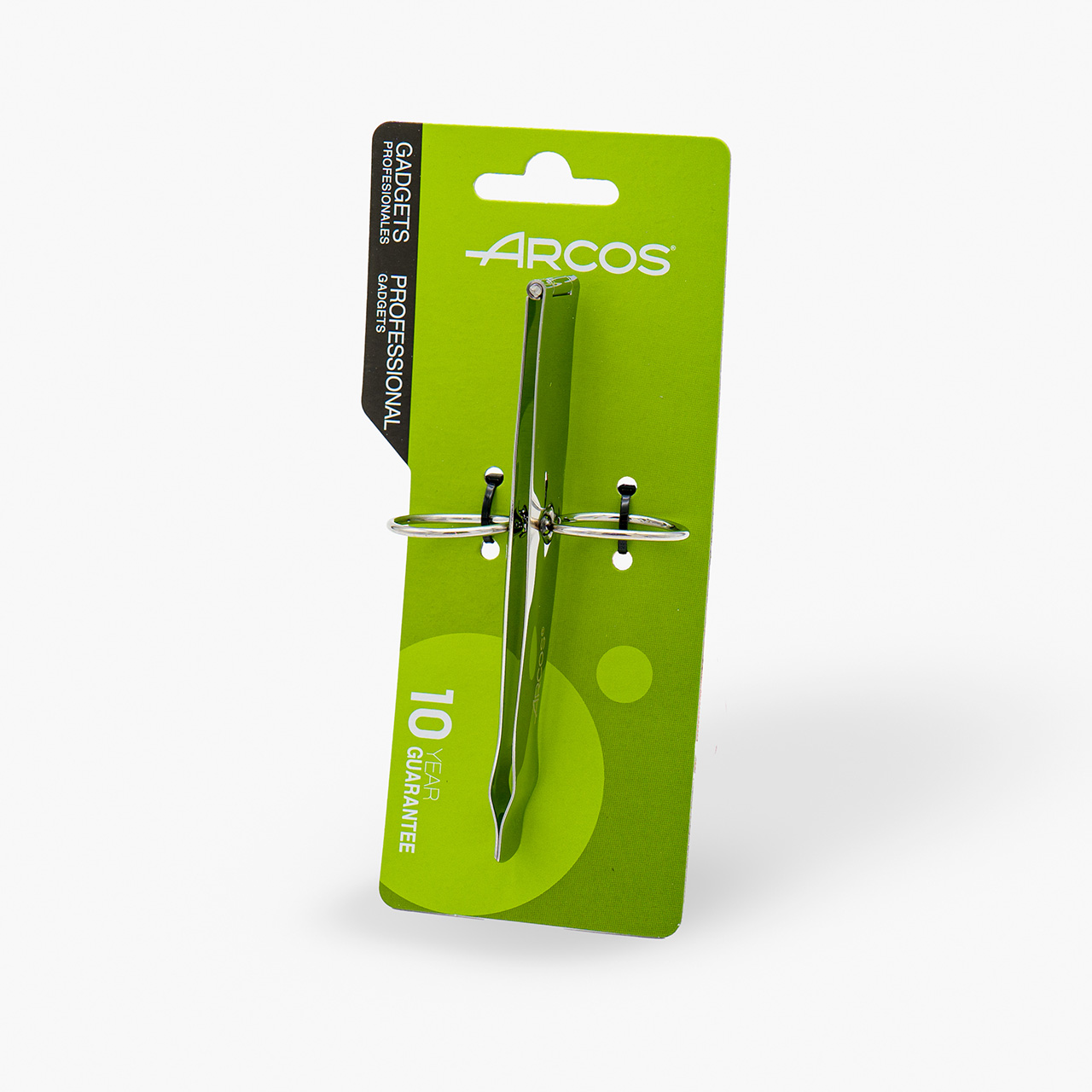 Las pinzas para jamón de Arcos, de 120 mm, están fabricadas en acero inoxidable de alta calidad, con un diseño ergonómico para un agarre cómodo y preciso. Son resistentes, duraderas, aptas para lavavajillas y cuentan con una argolla para colgarlas.